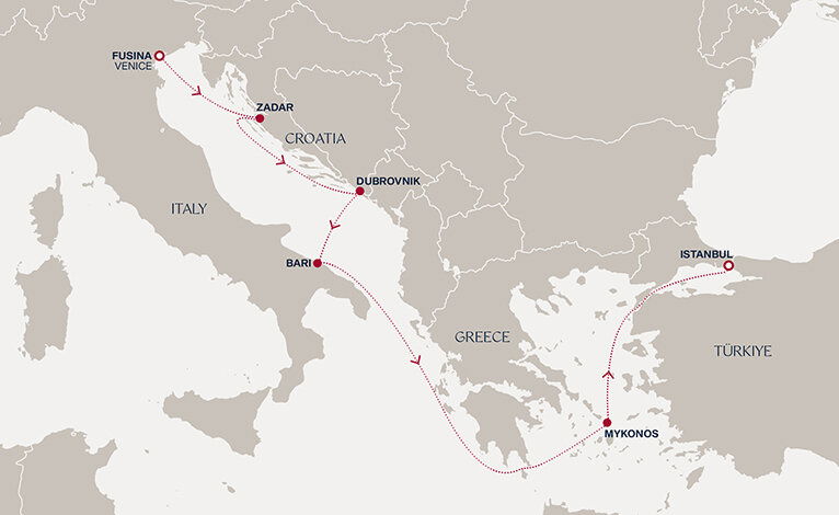 When the heat of the day dies down, drop into the sacred isle of Delos to explore remarkable ruins; amphitheatres, temples, public squares, marketplaces and shrines to Greek Gods. Take a table in central Chora for perfectly-cooked, local dishes with generous views; mounds of flaky filo, Greek salads, halloumi and sea urchin, washed down with freddo. When the sun sets, head for a signature sundowner with views across the ocean. After dark, follow the fun to legendary bars and clubs. Progressive and profoundly beautiful.