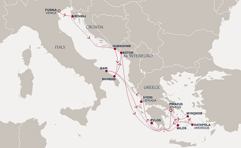 Snow-white buildings pop in blinding contrast to the cerulean blue of the Aegean in Katapola, where fishermen sip raki in waterside tavernas, and the perfume of citrus drifts down cobbled streets. Hike between sleepy Cycladic villages and Mycenaean ruins as wild goats graze on sun-baked hillsides and stop to explore pretty chapels where locals tell tales of Greek myths and legends. Below the waves, rainbow-coloured marine life darts through crystalline waters punctuated by sea caves and rusting wrecks. Succumb to sunset in charming Chora, the island capital of Amorgos.
