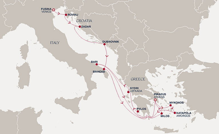 Snow-white buildings pop in blinding contrast to the cerulean blue of the Aegean in Katapola, where fishermen sip raki in waterside tavernas, and the perfume of citrus drifts down cobbled streets. Hike between sleepy Cycladic villages and Mycenaean ruins as wild goats graze on sun-baked hillsides and stop to explore pretty chapels where locals tell tales of Greek myths and legends. Below the waves, rainbow-coloured marine life darts through crystalline waters punctuated by sea caves and rusting wrecks. Succumb to sunset in charming Chora, the island capital of Amorgos.