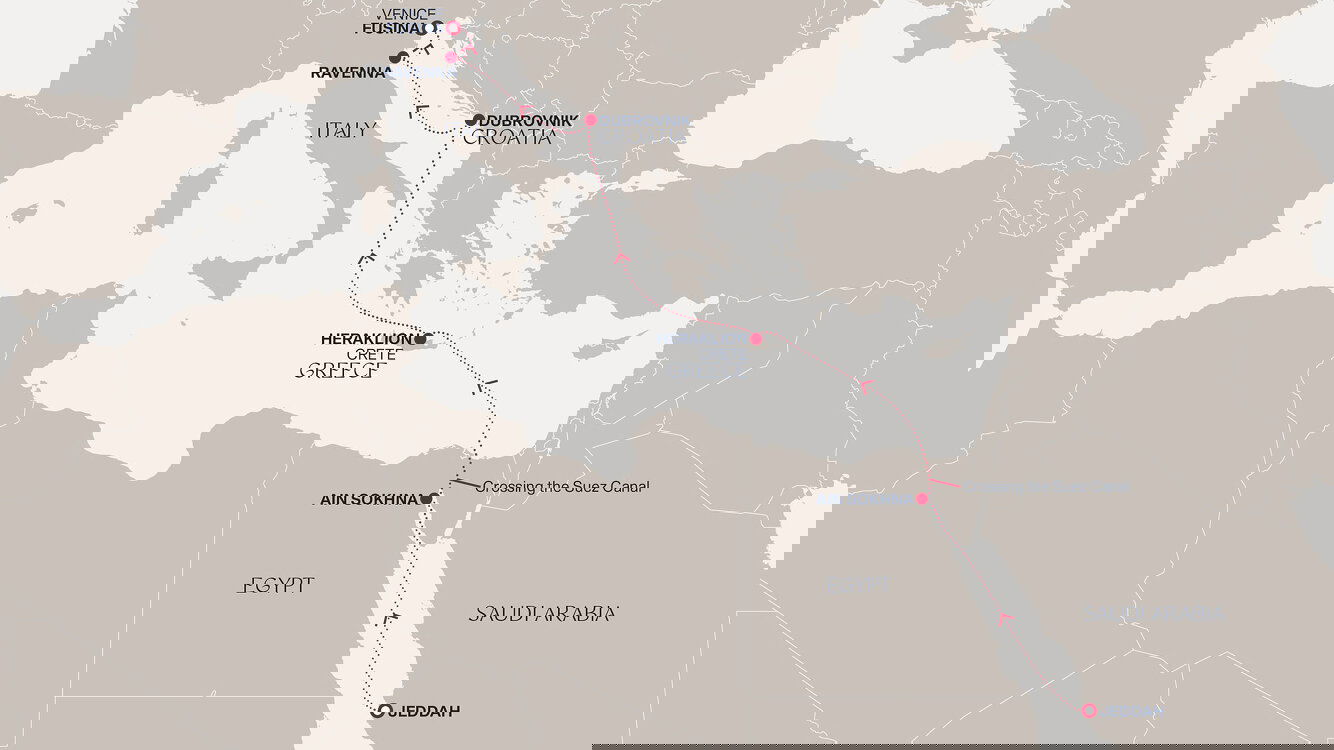 Enjoy the breathtaking illusion of sailing through oceans of desert sand as you cruise the Suez Canal, the engineering marvel that connects the Mediterranean and Red Seas.