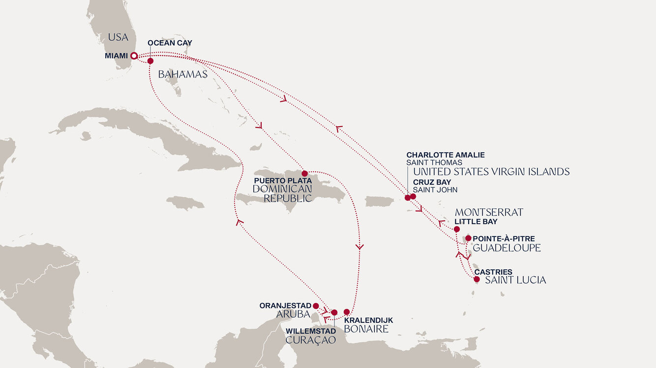 This multicultural city where the sun rules supreme is more than just a cruise port. Palm-lined causeways stretch across luminous Biscayne Bay as Miami rises in a gleam of glass towers, Art Deco curves, and tropical colour. Along Ocean Drive in South Beach, pastel facades from the 1930s glow beneath the Florida sun, while nearby Little Havana hums with domino parks, cigar shops, and the aroma of Cuban coffee. Beyond the shoreline, calm waters, yacht marinas, and breezy promenades frame a city shaped by Caribbean rhythms and sunlit coastal glamour.