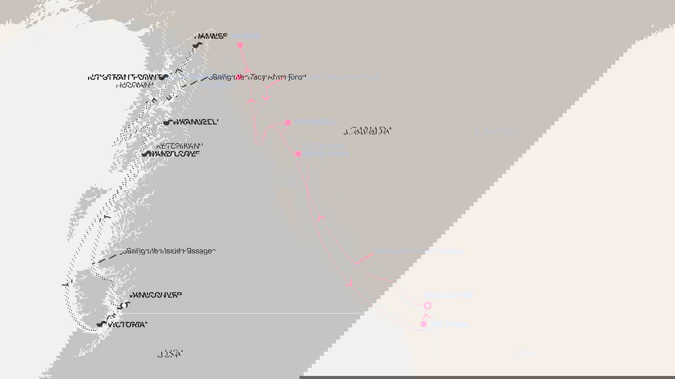 A visually potent elixir of Mother Nature, the Tracy Arm Fjord is a magical mix of steep cliffs, glacier-blanketed mountains, and the last intact temperate rainforest in the US. Slipping through the narrow 48-kilometer waterway, spy nimble goats upon craggy precipices, eagles riding wind currents overhead, icebergs bobbing, and ice shards where fat baby seals slumber. If conditions prevail, we reach the rarely seen twin Sawyer Glaciers, an electric blue marvel that holds thousands of years of secrets in its dense ice.