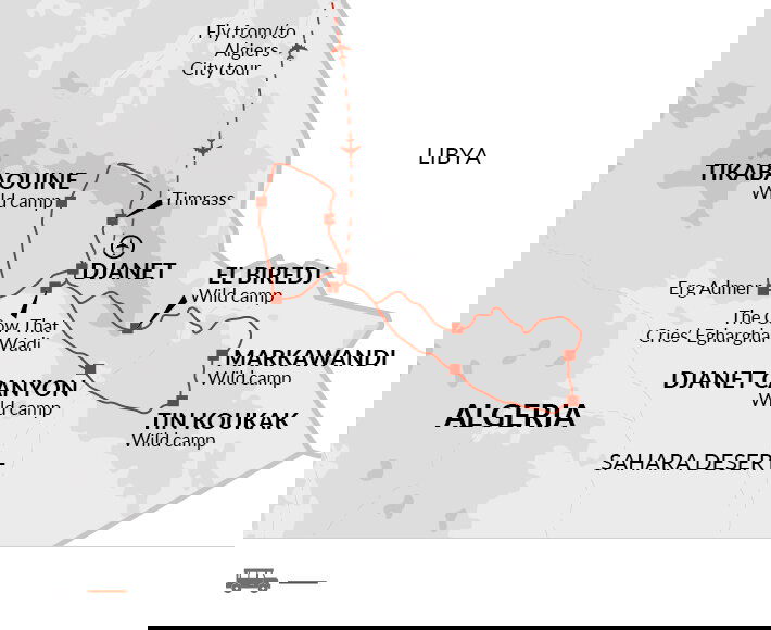 There is an optional walk to visit rock art around Tin Koukak lasting a couple of hours, we'll set off early to avoid the heat of the day (4WD vehicles will be available for those who don't wish to walk).