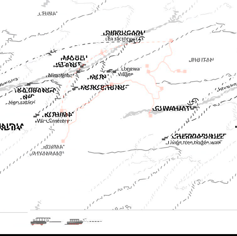 Our tour leader plans to meet you in the hotel reception at 7pm for a welcome meeting. If you'd like an airport transfer today, you'll need to arrive into Lokpriya Gopinath Bordoloi International (GAU), which is around one hour from the hotel. If you miss the welcome meeting, our tour leader will catch you up as soon as possible. Stay: Dynasty Hotel (or similar) (Comfortable)