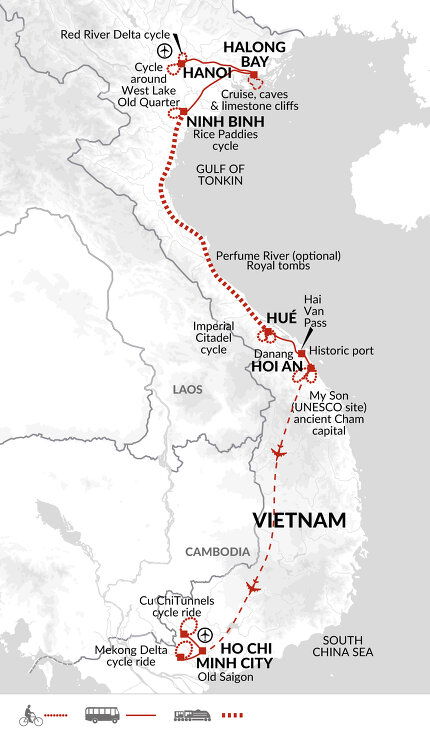 Our total cycling distance today is approximately 35 kilometres/21.8 miles. Stay: Thanh Lich 2 Hotel (or similar) (Comfortable) (B)