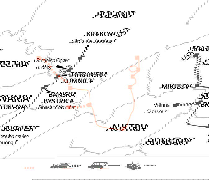 While we won't have time to look inside any of these landmarks on our walk, afterwards you're free to explore solo and will have plenty of time to tick them off. You can choose to return to Bratislava by train at your leisure (you'll be given a return ticket) or you might prefer to book a boat trip back along the Danube River, taking approximately two hours and costing €30 per person. Stay: Hotel Matysak (or similar) (Comfortable) (B)