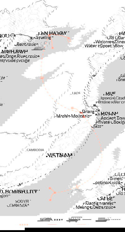 This morning, we'll drive two-and-a-half hours to the south of Halong Bay for an overnight cruise on Lan Ha Bay - one of the most visually impressive landscapes in Southeast Asia.