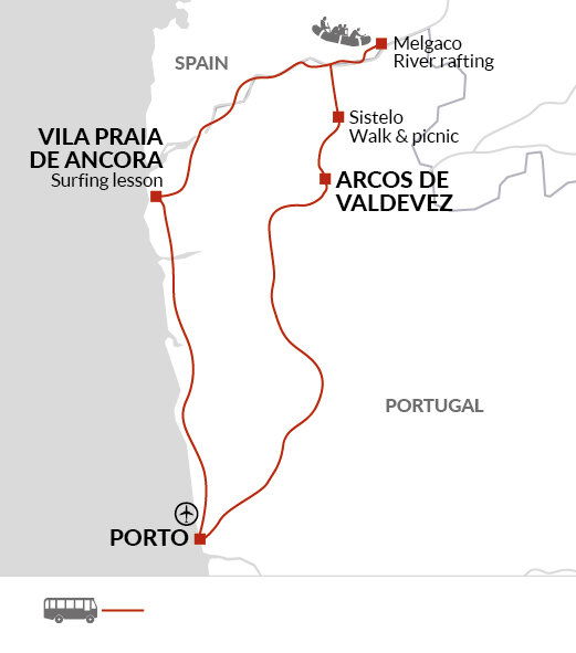 Heading further north, our destination is the small town of Melgaco situated on the border between Portugal and Spain. We will meet our rafting guides just outside of town and get changed into wet suits. Changing rooms and showers are available, a towel and swimming costume is recommended as are wet shoes or an old pair of trainers which will get wet. There are secure facilities to leave personal effects on site.