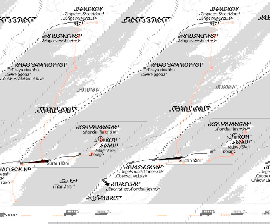 This morning trade in the teeming jungle for the idyllic beaches of Khao Lak overlooking the Andaman Sea. After checking out and a long tail boat ride back to the pier, it is a two-hours drive away.