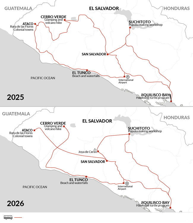 Our trip starts today in San Salvador, El Salvador's capital. After some major regeneration works, the leafy plazas and pedestrianized central zones of El Salvador's main city have never been safer and more pleasant to explore. Encircled as it is by volcanoes, San Salvador is a pretty capital, which is rare by Central American standards.