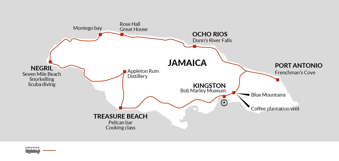 Due to the number of evening flights into Kingston, your tour leader will meet you on the morning of Day 2 for a welcome meeting. Details of timings will be left in the hotel reception. There are no activities planned today, so you're free to arrive at any time. If you'd like an airport transfer today, you'll need to arrive into Kingston's International Airport (KIN), approximately a 40-minute drive from our hotel. Should you miss the meeting, your tour leader will catch you up as soon as you catch up.
