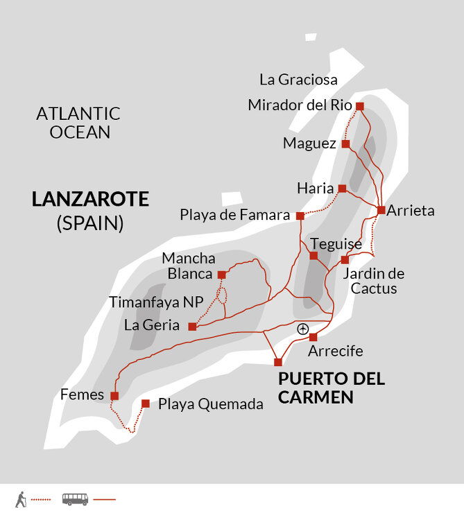 Today has been left free to relax or explore the region more. It is possible to take a day trip to La Graciosa - this small arid island has a population of less than 700, with unpaved sand roads, isolated beaches, a rich biodiversity of flora and fauna and a slow pace of life that makes you feel like you're stepping into a different country. On the island, there is an enjoyable self-guided walk that takes you to Playa Francesca, and shorter or longer walk options can be discussed with your tour leader. The ferry to La Graciosa leaves from Orzola which is a 50-minute taxi ride from Puerto del Carmen.