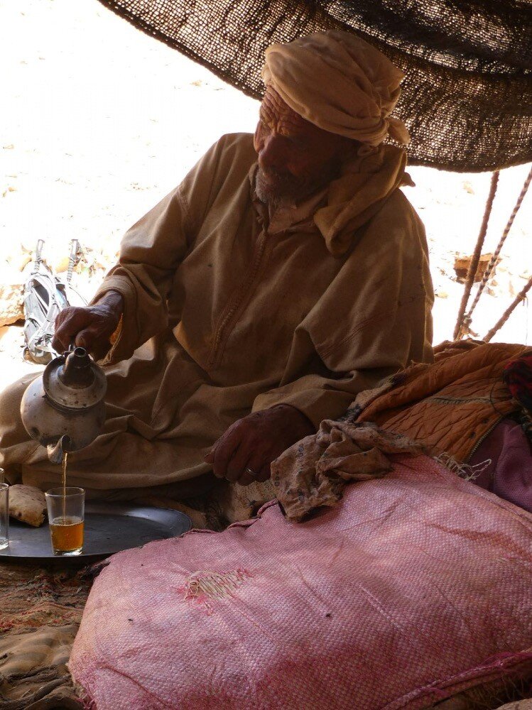 Our camp is basic but comfortable - the twin share tents are fully equipped with full size single beds with mattresses, blankets, and pillows and there are charging points for phones and cameras. The camp site is right on the edge of the magnificent sand dunes, after a refreshing glass of mint tea you may wish to take a stroll amongst the dunes to witness the sun setting over the Sahara Desert, the light at this time in the late evening casts shadows over the dunes making them a photographers dream. Dinner is served under the stars after which we retire to a campfire. Note that the camp has shared bathroom facilities, showers are simple and hot water and good water pressure aren't guaranteed. Stay: Nomad Camp - Chebbi Dunes (or similar) (Comfortable) (B/D)