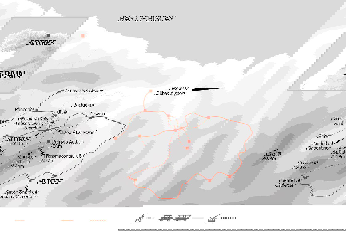 Departing the mountains this morning after breakfast, we'll drive to Bilbao Airport (BIO) where we'll aim to arrive at 11.30am. This is where the trip ends.