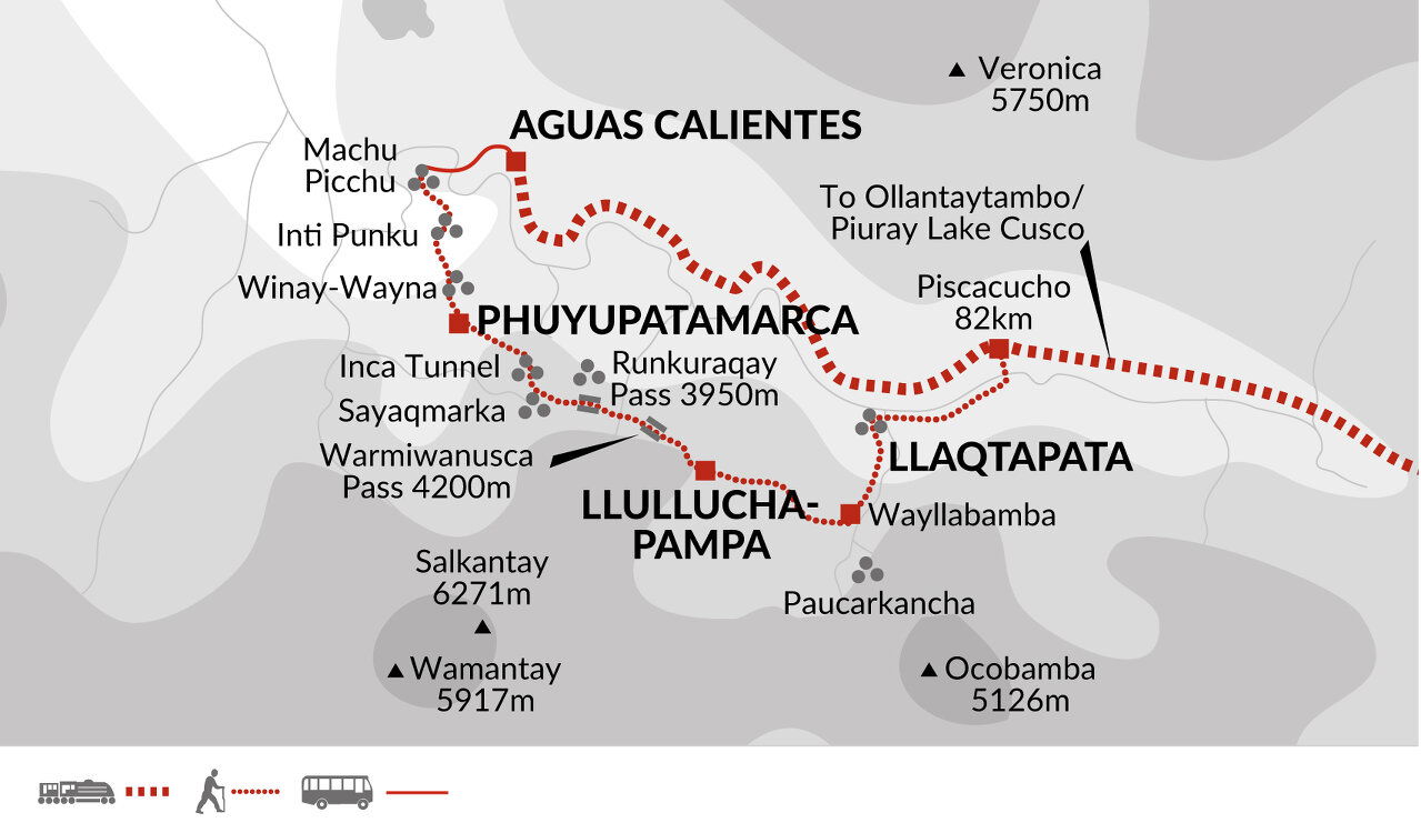 This morning, we'll leave the city of Cusco behind and drive to Ollantaytambo, an original Inca town. Here we'll have a short walking tour to stretch our legs, visiting a traditional house and our first view of Inca terracing. We'll continue by bus for another hour to reach Kilometre 82, the starting point for the classic Inca Trail. The trail was first explored by Hiram Bingham in 1911 and opened for walkers in 1970. The famous ruins of Machu Picchu are not the only historical remains within the area, many other interesting sites are hidden in places which can only be reached on foot and have scarcely been explored.
