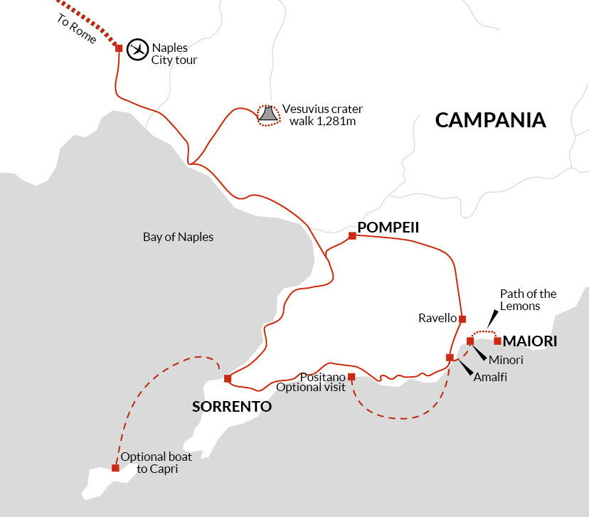 Today you're free to relax on the Sorrento Peninsula or perhaps to visit the island of Capri. It's just a short walk to the Port of Sorrento to board a hydrofoil ferry across to the island of Capri, which takes about 20 minutes each way. There are then multiple ways for you to explore the island, but we'd recommend taking a private bus excursion to the main sights of Anacapri and Capri. From Anacapri, you could walk to the delightful museum and gardens of Villa San Michele and to the Villa Jovis - the ruins of the Roman Emperor Tiberius' cliff-top palace with impressive views over the island. Alternatively, you can take a boat to the famed Blue Grotto, which is a sea cave where the sunlight shines through it in such a way that it illuminates the waters and makes them appear bright blue. Go into the cavern to witness this natural spectacle. Stay: Hotel Nice (or similar) (Comfortable) (B)
