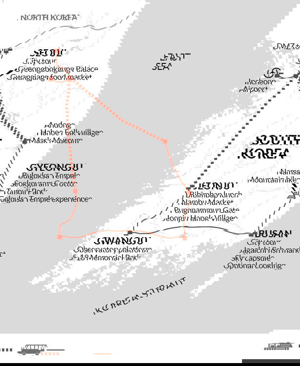 If you would like to receive a complimentary airport transfer today, you'll need to arrive into Incheon International Airport (ICN), which is a one-and-a-half-hour drive from our hotel. Should you miss the welcome meeting, your Leader will inform you of any essential information as soon as you catch up the next morning.