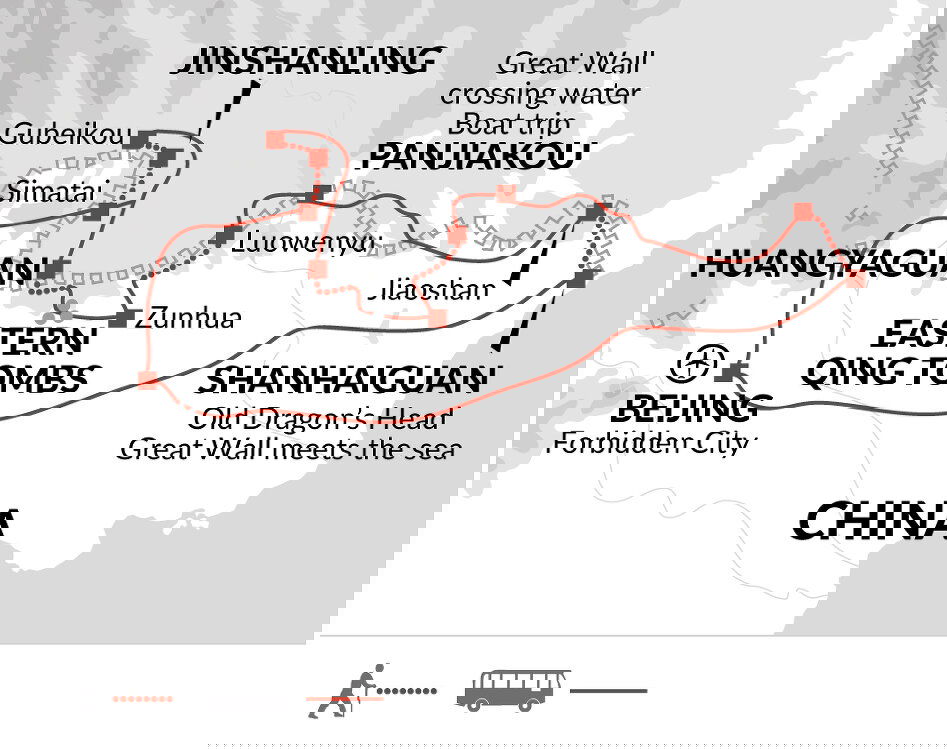 Please note, the Jiaoshan Pass is closed each year until the 1st of May due to fire concerns. Departures before the 1st of May will walk the Jiumenkou section of the wall instead, a 40-minute drive from our original start point. This route is a bit shorter at around 2.5 kilometres/1.5 miles long, taking around two hours to complete.