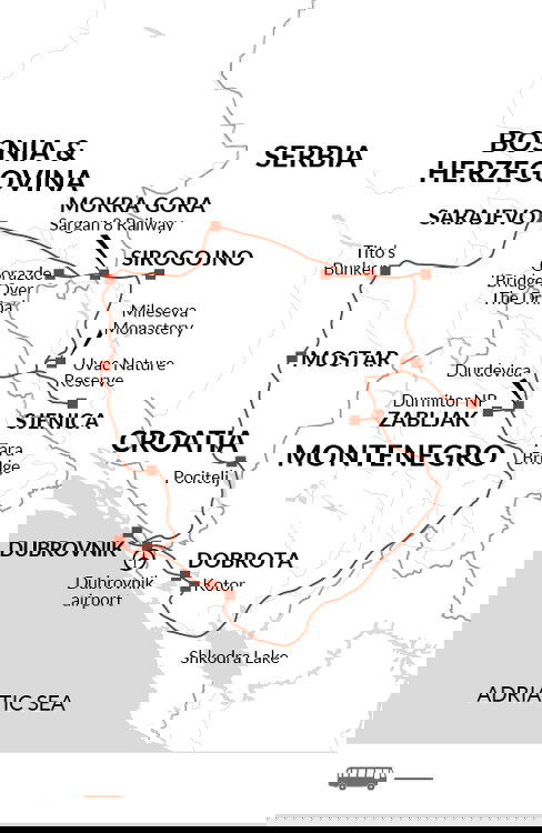 Today, we'll be crossing the border from Montenegro into Serbia. Along the way, we'll pass the stunning Djurdjevica Tara Bridge, which soars 135 metres above the Tara River Gorge.