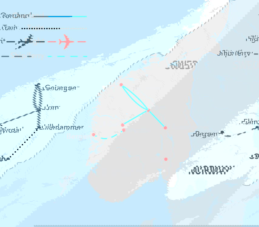 After breakfast, take a private minibus to Lom, a 3-hour scenic drive from Lillehammer. This bus trip takes you through some of Norway's most beautiful highlands and lush valleys. Experience the valley of Gudbrandsdalen surrounded by the national parks, an abundance of locally produced food, old architecture, and good hiking. Lom is a small town encapsulating the very essence of the Norwegian countryside. Situated in the famous Jotunheimen National Park, Lom is surrounded by majestic nature. Check into your charming historic hotel. Dinner is included this evening. Stay: Fossheim Hotel or similar (B/D)