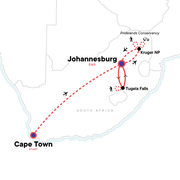 10 Day Active South Africa: Cape Town, Kruger & Tugela Falls Itinerary (G Adventures)