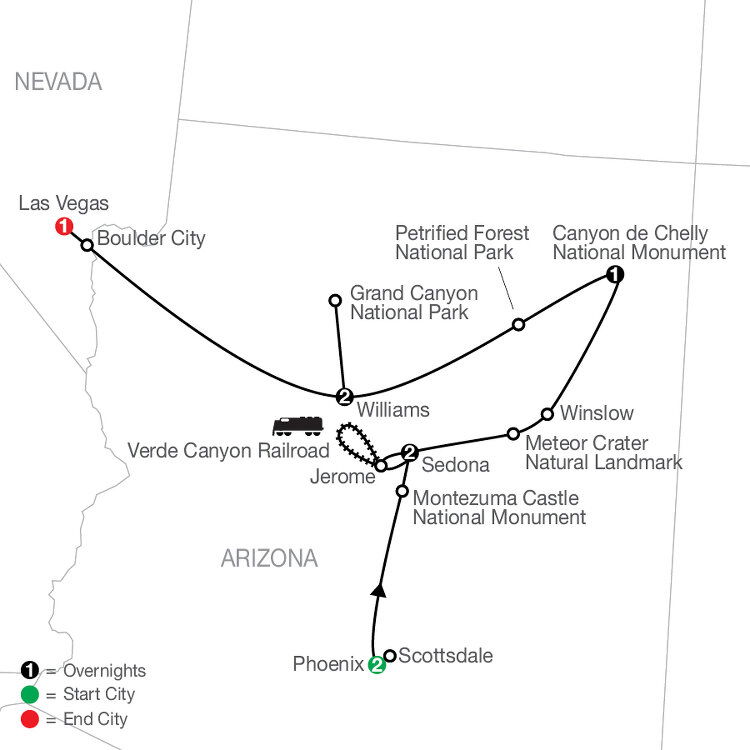 Visit Jerome, a former copper mining camp and historic ghost-town-turned-artist-community. After a bit of free time, travel on the scenic Verde Canyon Railroad onboard renovated vintage train cars traveling on a 20-mile journey through 110 years of history. Return to Sedona for a free evening. (B)