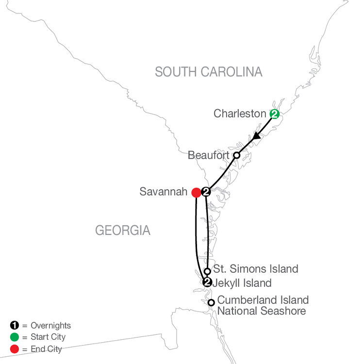 Enjoy a leisurely start to the day and a guided trolley tour of the Jekyll Island Historic District. A cluster of 19th-century winter-cottages, this “club” was formed by some of America's most prominent families. The rest of the day is yours to explore the island. Perhaps take a boat to Cumberland Island National Seashore, shop, or kayak close to the sandy coast. Your Tour Director hosts an elegant farewell dinner at the Jekyll Island Club to celebrate your Southern adventure. (B/D)