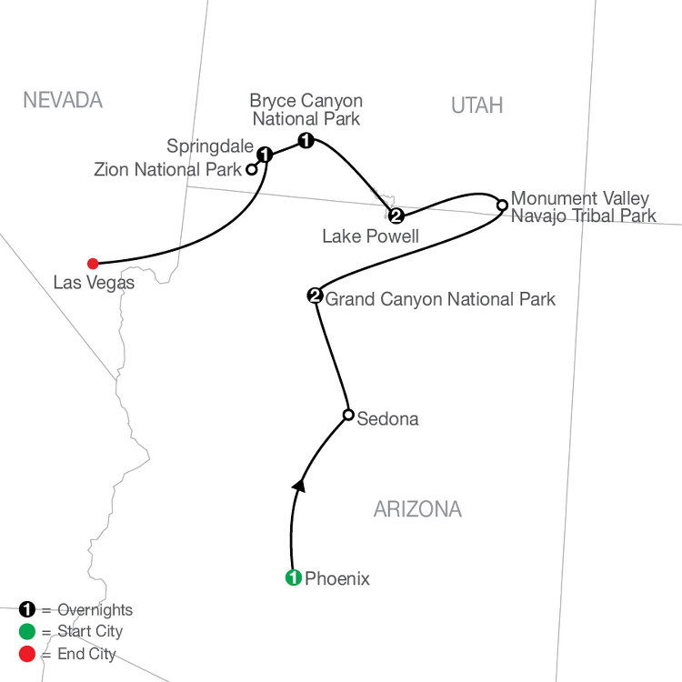This morning, travel to Las Vegas for your homebound flight. Please schedule flights after 1:30 pm. Want to explore more in Las Vegas? Additional nights are available for purchase. (B)