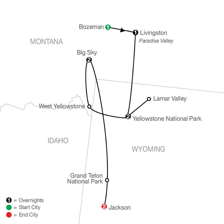Wake up this morning to the fresh, crisp air of Yellowstone and visit the Yellowstone Tribal Heritage Center, where local artists display and demonstrate nature photography, beadwork, storytelling, watercolor painting, and more. Depart Yellowstone National Park for the Grizzly and Wolf Discovery Center in West Yellowstone for an immersive experience en route to Big Sky, Montana. With Yellowstone in the rear-view mirror, the world-famous Rocky Mountain Spanish Peaks greet you with the golden hour in Big Sky. (B/D)