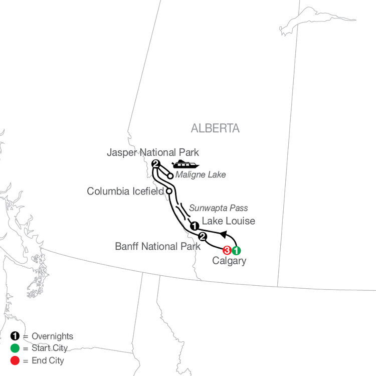 Depart Jasper with a scenic drive on Icefields Parkway en route to Columbia Icefield. Explore how landscapes are shaped with an epic ride aboard the mighty Columbia Ice Explorer all-terrain vehicle. Continue through Banff National Park to discover breathtaking beauty beyond imagination.