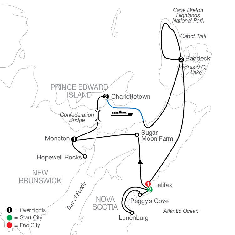 Cross over the Canso Causeway and continue across Nova Scotia to Halifax and visit the Citadel Hill National Historic Site. Tonight, join your Tour Director and new friends at a farewell dinner—the perfect finale to your Maritimes vacation. (B/D)