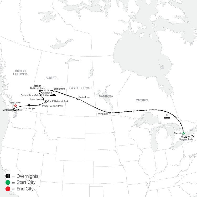 TOUR HIGHLIGHT - TRAIN SPOTLIGHT: Spend the next three days and nights on this classic trip across Canada's heartland. Your VIA Rail Sleeper Plus class rail cars are refurbished art-deco cars from the 1950s. Domed observation cars let you enjoy views of the Canadian countryside as you roll past Ontario's beautiful landscapes.
