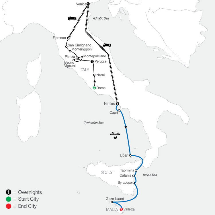 Sit back and relax for a scenic train journey through Italy to the vibrant city of Naples. A local host will meet you on arrival at Naples train and accompany you to the overnight hotel. After check-in, enjoy free time to discover more of this vibrant city. This evening why not try one of Naples' most famous inventions – the pizza margherita! (B)