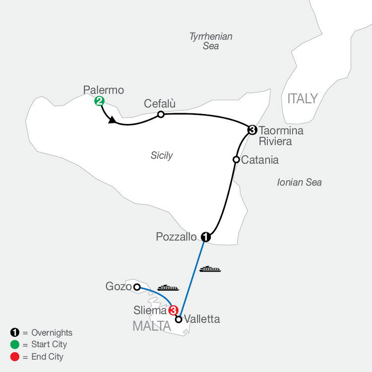 This morning leave Italy behind and board a catamaran for a ride across the Mediterranean Sea to Malta. After disembarking, start your small group Maltese discovery with a sightseeing tour of Valletta, the capital city. As you explore the city you will also discover local food traditions when you stop to try pastizzi (savory pastries), Maltese coffee, and chocolate. Later, arrive at Sliema. (B)