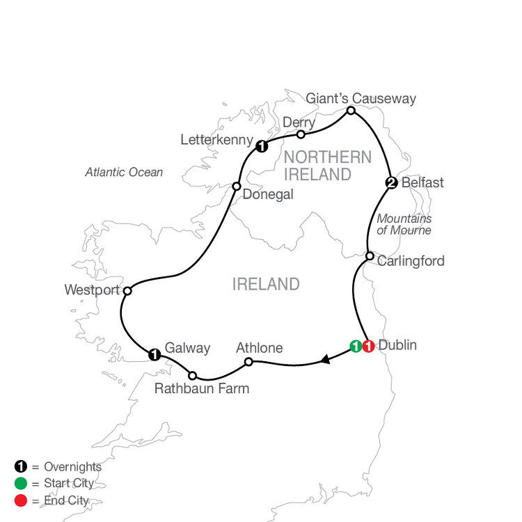 Leaving Northern Ireland stop in the charming village of Carlingford on the Cooley Peninsula, known for its oyster farms and medieval buildings. Take in more lush scenery as you return to Dublin to enjoy some free time in Ireland's capital city.