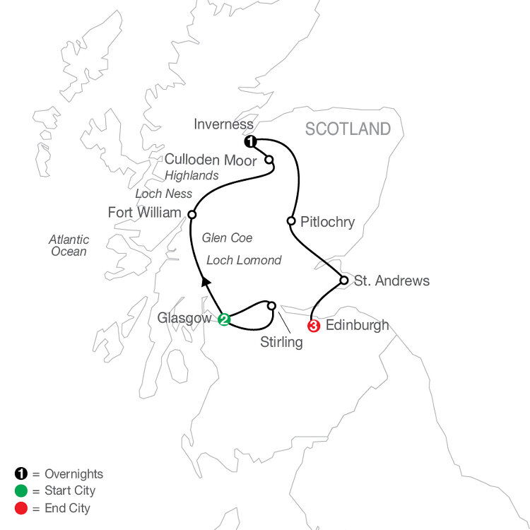 TOUR HIGHLIGHT - EPIC RIDE: They can take the low road, but we'll take the high road on a scenic drive through the magic and mystery of the moors and glens of the Scottish Highlands. From lovely Loch Ness and more across the beauty of Scotland's magnificent scenery.