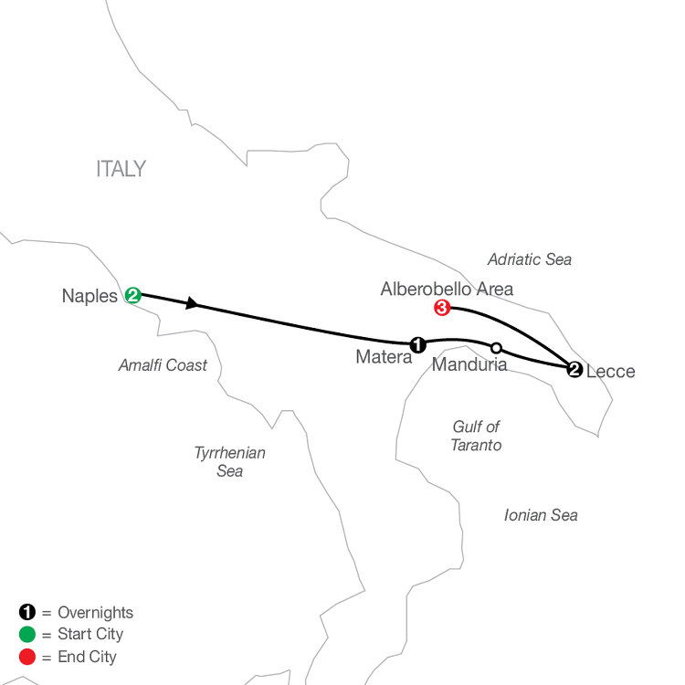 Your vacation ends with breakfast this morning. (B) (Nearest airport is Bari)