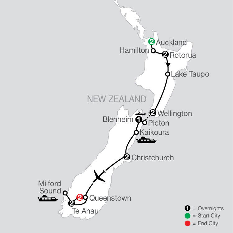TOUR HIGHLIGHT - LOCAL TASTES: The Marlborough region on New Zealand's south island is known for delicious fresh seafood, diverse landscapes, sheltered waterways, and its world-famous Sauvignon Blanc produced in its valleys of vines. Sit back and relax over a sumptuous tasting of local wines in the sunny town of Blenheim.