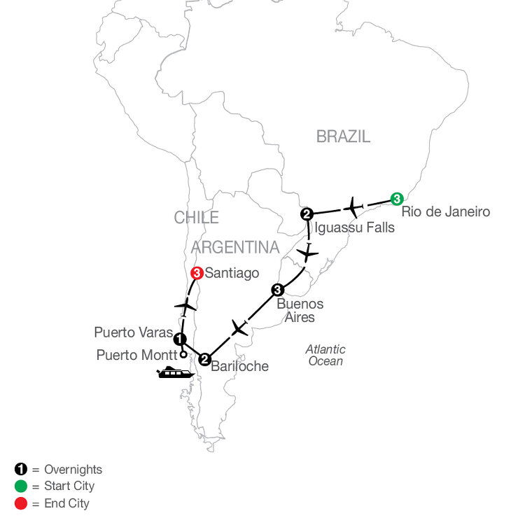 LOCAL FAVORITE - NATURAL WONDERS: Why go around the Andes Mountains when you can cut a path directly through them? That's exactly what you will do today on a full-day Andes Lake Crossing from Argentina to Chile! Sail across glacial lakes, travel through national parks, stop on a remote island for lunch, watch for giant condors, and cruise past active volcanoes into Chile. Today will be an unforgettable adventure.