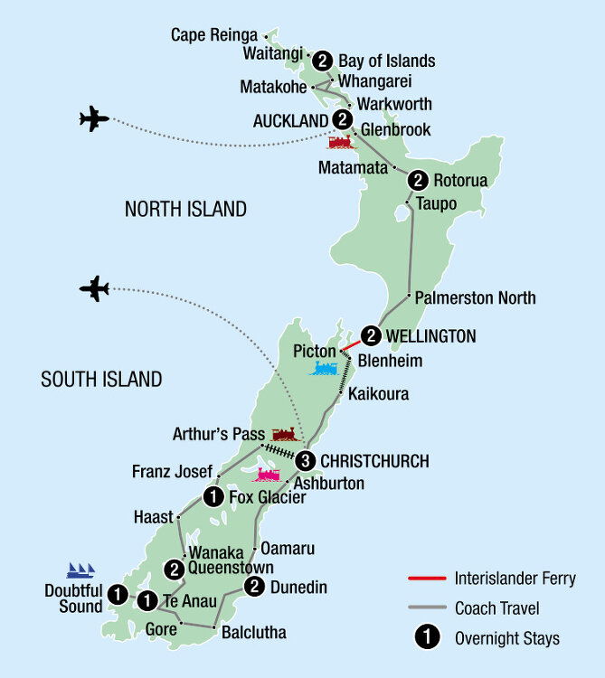 On arrival in Auckland you will be met by a tour representative and transferred to your hotel. Meet your travelling companions over a complimentary pre-dinner drink.