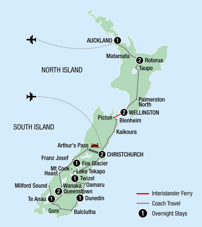 Time to say goodbye. You will be transferred to the airport for your flight home after a memorable New Zealand holiday.