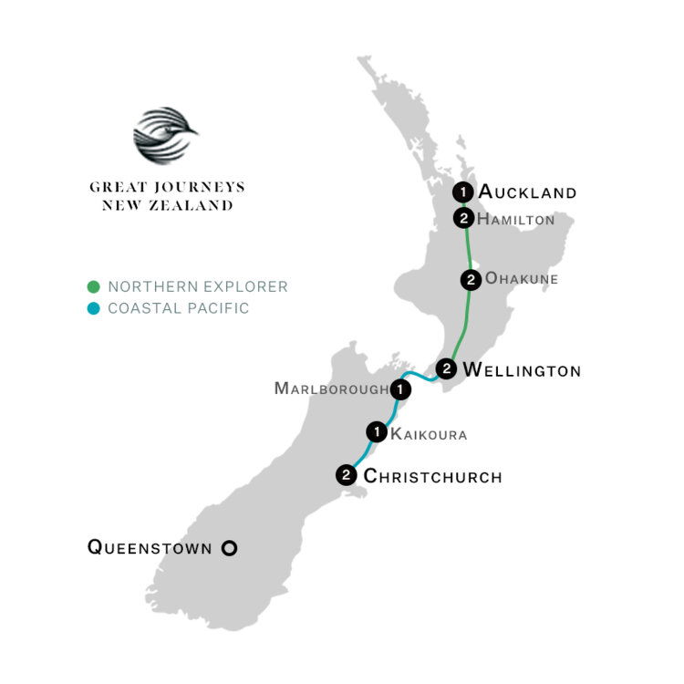 On our Signature Auckland to Wellington tour, your journey will begin aboard the Northern Explorer, leaving the towering Auckland skyline behind you and setting out across the mighty Waikato plains. From Hamilton, your journey spirals up onto the volcanic plateau around the historic Raurimu Spiral. At the top, you will cruise beneath three mighty volcanic peaks before slowly descending across several soaring viaducts. Your final journey brings you along the sparkling Kaikoura Coast on your way into our garden city - Christchurch.
