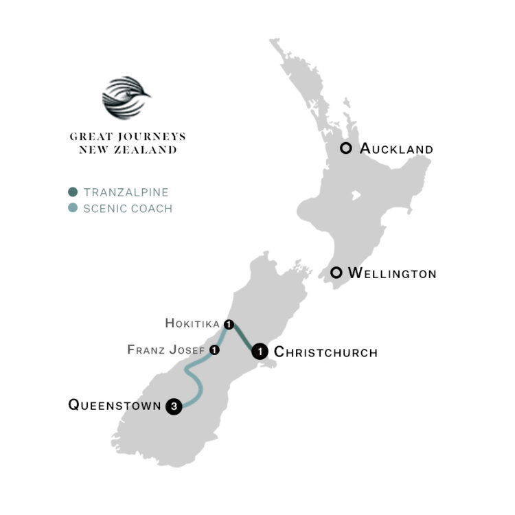 The journey is part of the destination on our tours, and our Scenic trains are the ultimate way to see New Zealand. On our Signature Inspirational Alps tour, your journey begins aboard the world-famous TranzAlpine, traversing the rugged cliffs of the Waimakariri River gorge on your ascent into the Southern Alps. From Arthur's Pass, you will descend through the century-old Otira tunnel that stretches 8.5km beneath the great divide. On the far side, you'll wind through the lush green scenery of West Coast on your way past Lake Brunner and onto Greymouth. Lastly, from Greymouth you will travel by luxury bus along the famous Great Coast Road - one of the most beautiful roads in the world.