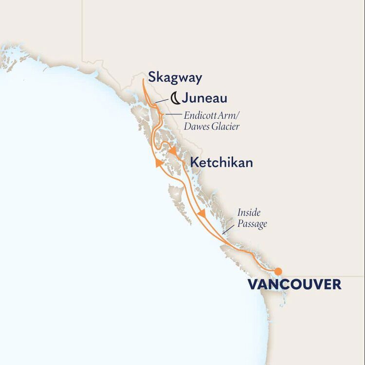 Alaska's Inside Passage offers breathtaking views of glaciers, fjords, and abundant wildlife , making it one of the most scenic cruises in the world and one of the few locations where deep-draft ships can sail close to steep mountain walls. Stretching from Puget Sound in Washington to the Alaskan Panhandle, this coastal route provides stunning natural scenery. Expect to see orcas, humpback whales, and sea lions from the deck, while eagles soar overhead.