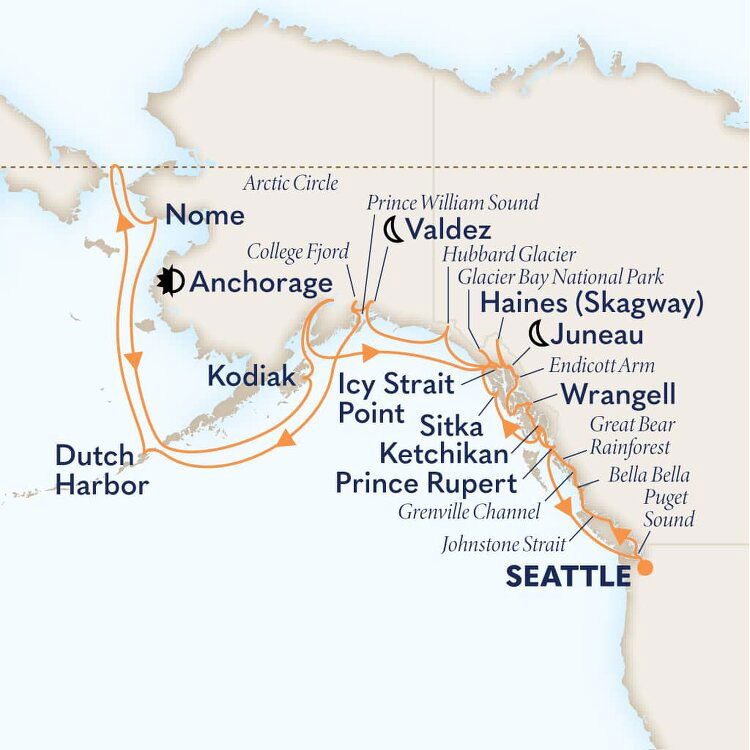 Venture 'where the north wind doesn’t blow' and discover Icy Strait Point. This uniquely Alaskan port is one of the few places in the world where wildlife outnumbers the human population. Pine trees as tall as skyscrapers, humpback whales, eagles, wild salmon, black bears and more form the harmonious tapestry of life in this Alaskan hinterland. Ships will dock at this port.