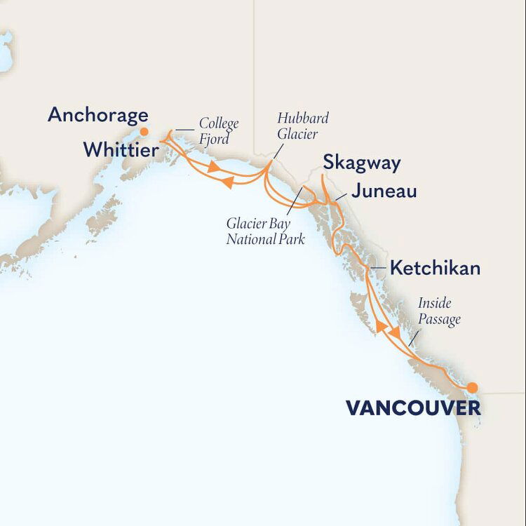 Alaska's Inside Passage offers breathtaking views of glaciers, fjords, and abundant wildlife , making it one of the most scenic cruises in the world and one of the few locations where deep-draft ships can sail close to steep mountain walls. Stretching from Puget Sound in Washington to the Alaskan Panhandle, this coastal route provides stunning natural scenery. Expect to see orcas, humpback whales, and sea lions from the deck, while eagles soar overhead.