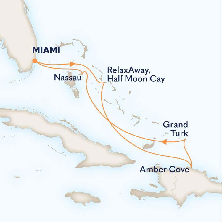 The high-energy capital of the Bahama's, Nassau, is filled with charming colonial-style buildings and pastel-coloured wooden shops that alternate with Georgian-style structures. To the north lies Paradise Island, developed almost exclusively to delight and accommodate visitors. Ships will dock at Prince George Wharf.