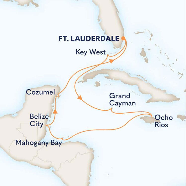 The southernmost point of the United States, Key West is known for its glorious sunshine, wild beaches, historical charm and carefree attitude. It boasts year-round tropical weather, and some of the clearest snorkelling and most preserved coral reef structures in the world. Ships will dock at this port.