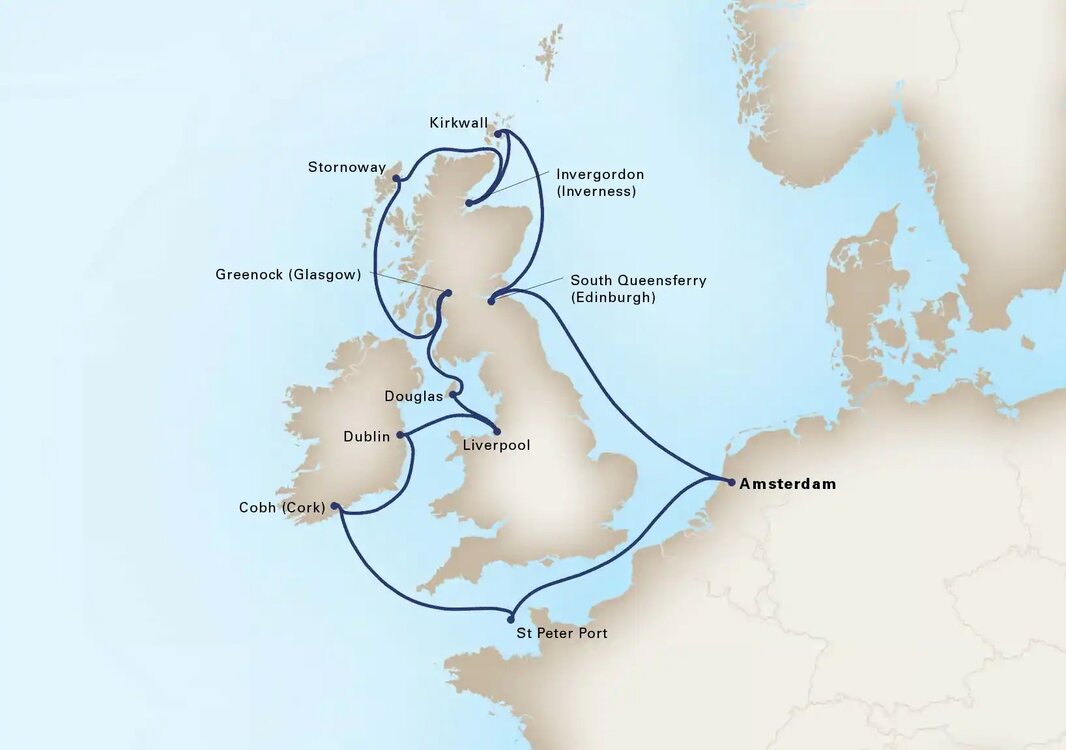 Your cruise ends in Amsterdam, the vibrant capital of the Netherlands and famed for its picturesque canals and historic charm. If you're extending your stay in the city there is plenty to explore. Start with a leisurely canal cruise through the city's stunning 17th-century architecture. The Anne Frank House, located on Prinsengracht, provides a poignant glimpse into history, making it a must-see landmark.