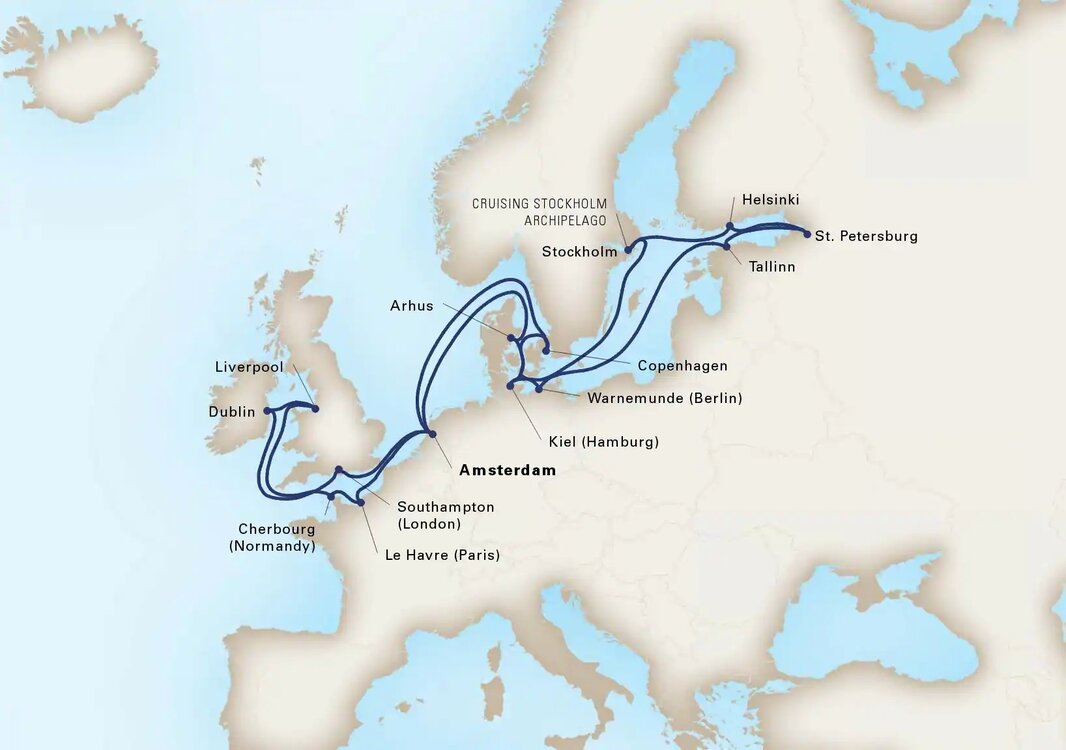 Your cruise ends in Amsterdam, the vibrant capital of the Netherlands and famed for its picturesque canals and historic charm. If you're extending your stay in the city there is plenty to explore. Start with a leisurely canal cruise through the city's stunning 17th-century architecture. The Anne Frank House, located on Prinsengracht, provides a poignant glimpse into history, making it a must-see landmark.